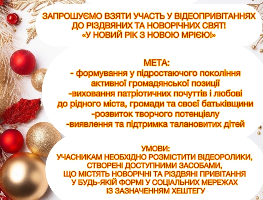 Усі охочі можуть взяти участь у відеопривітаннях до зимових свят «У Новий рік з новою мрією!».